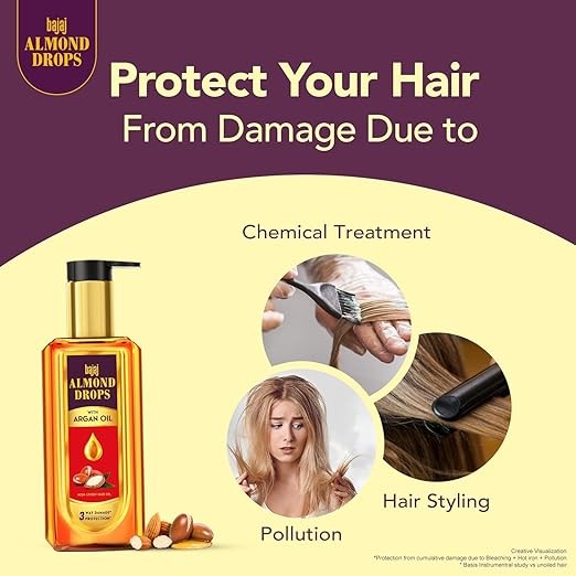 A non-sticky Almond Hair Oil with the goodness of 6x Vitamin E for deep nourishment. Bajaj Almond Oil helps reduce hair fall and gives you beautiful, strong hair with regular use. The almond oil feels light on the hair and makes styling and braiding your hair so easy! Suitable for all hair types and lengths, the hair oil ensures you rock your favourite hairstyle.