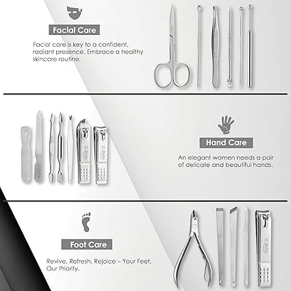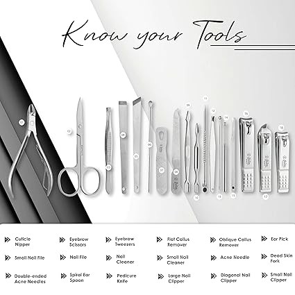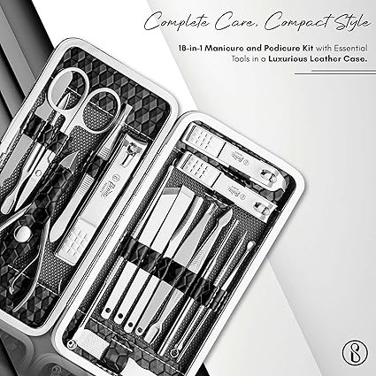 Beauté Secrets Essentials 18 Pieces Manicure Kit, Pedicure Tools for Feet, Nail Clipper, Ear Pick Tweezers, Manicure Pedicure Set for Women and Men (Black)