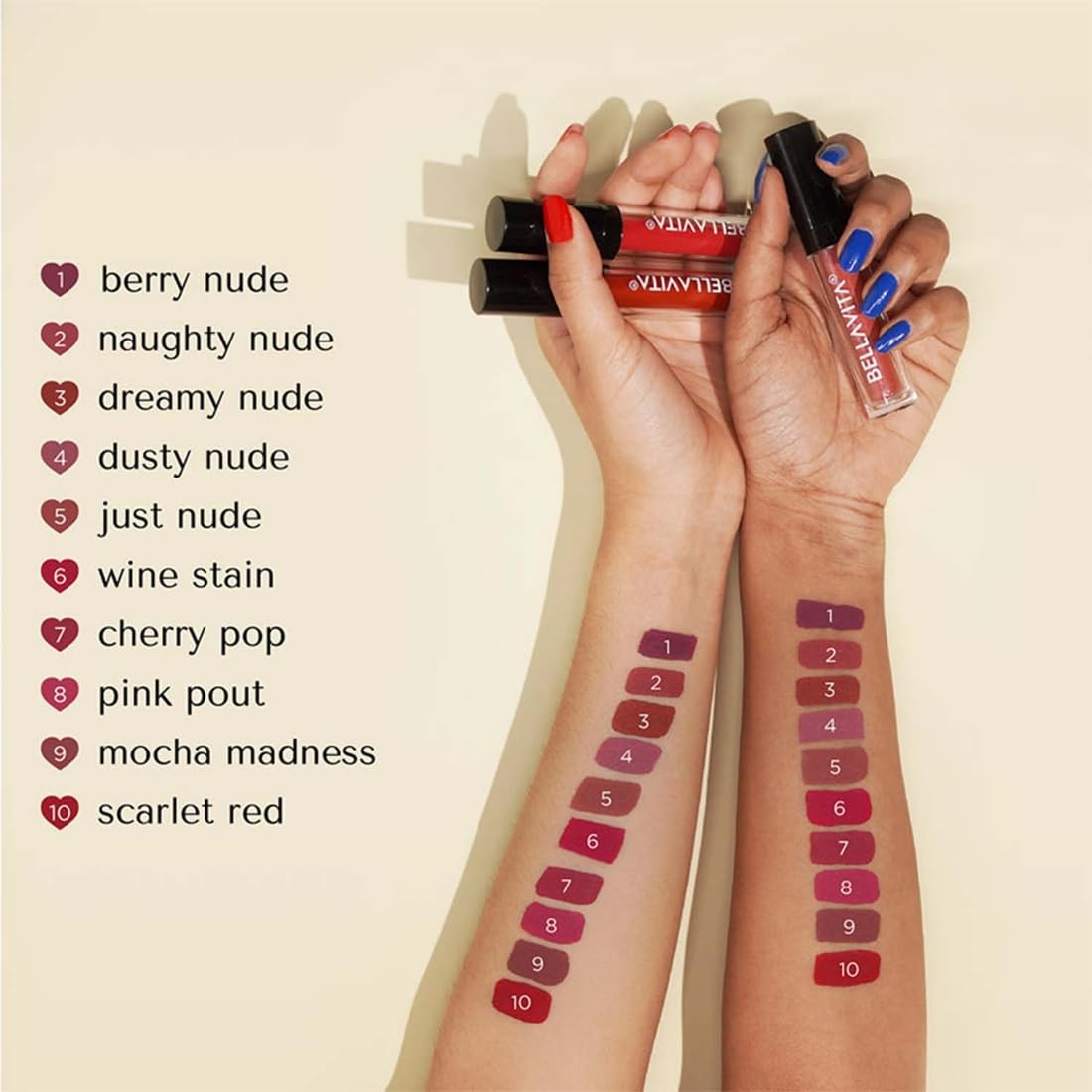 | Colour | Nude, Brown & Red |
