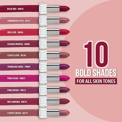 Blue Heaven Matte Love Mini Lipsticks pack of 10 | Long Lasting, Hydrating & Moisturizing Mini Roll on Lipsticks for Women | Soft-Matte Finish | 13g