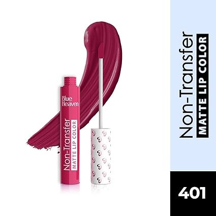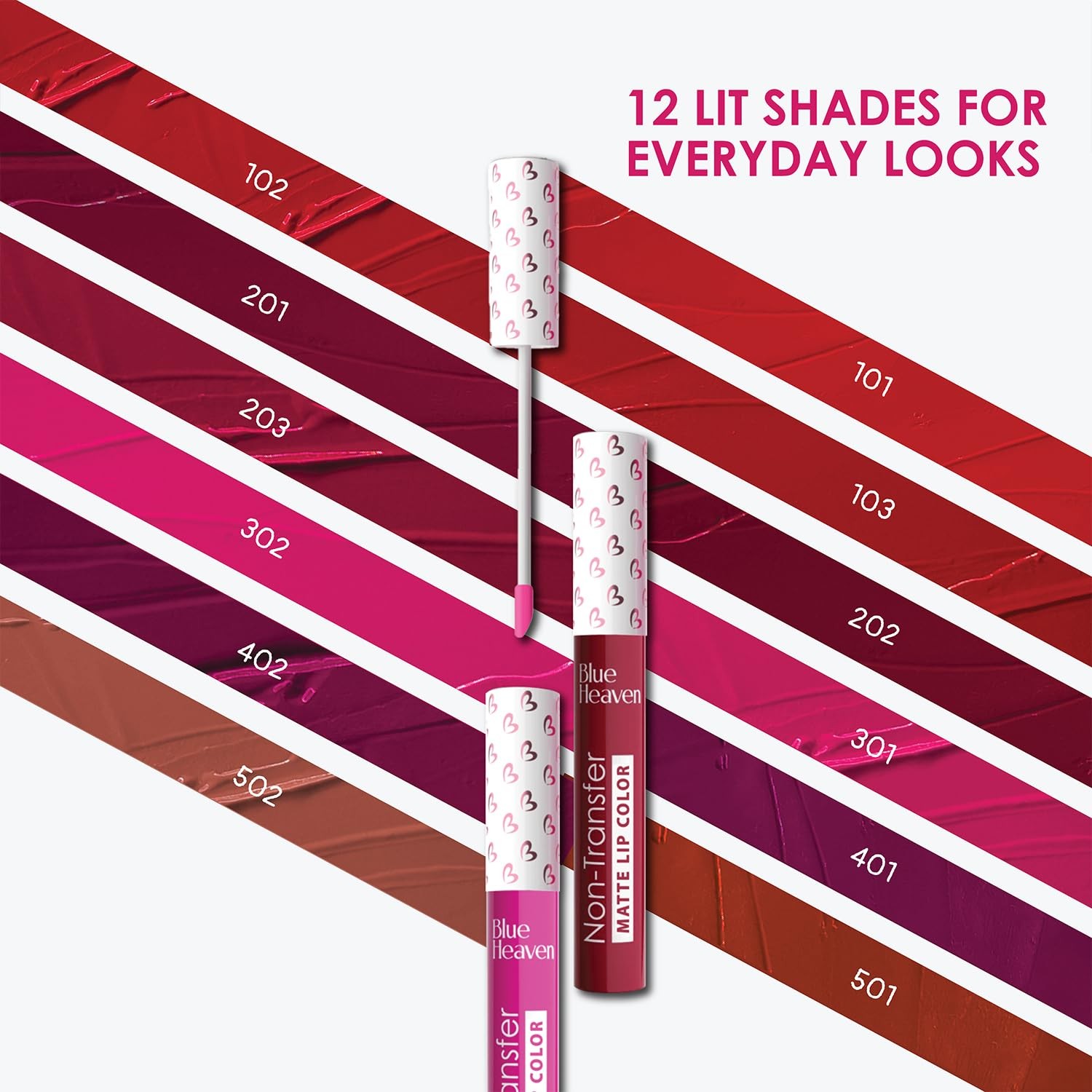 Blue Heaven Non Transfer Lip Color Liquid lipstick Waterproof & Smudge Proof Intense Pigment Long-Lasting upto 8hr Matte Finish with Hydrating Formula 401 3GM