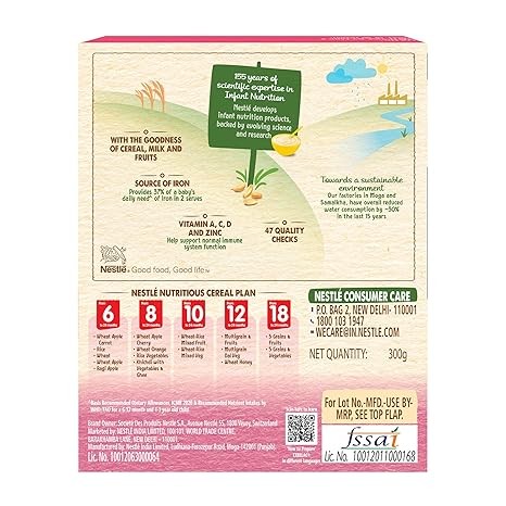 CERELAC Baby Food Cereal | No Refined Sugar | Ragi Apple for 6 to 24 Months Baby | Omega 3 Iron Protein Calcium Vitamin D for Babies | Instant Cereal | 300g