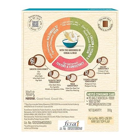 CERELAC Baby Food Cereal | No Refined Sugar | Rice for 6 to 24 Months Baby | Omega 3 Iron Protein Calcium Vitamin D for Babies | Instant Cereal | 300g
