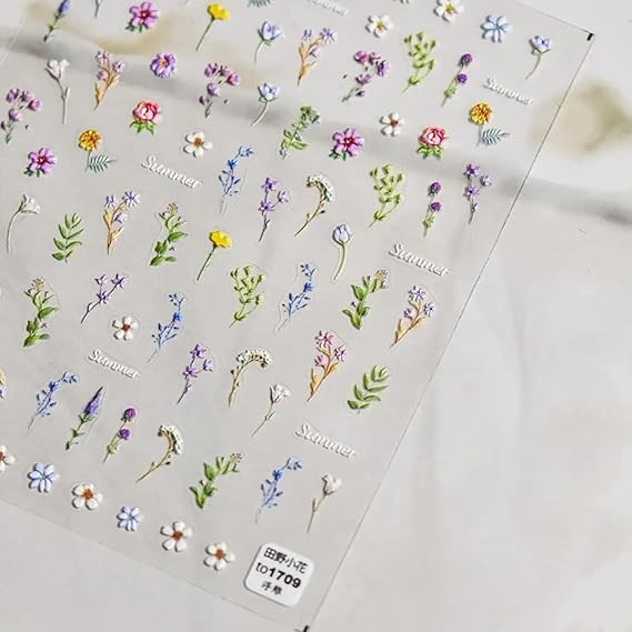 DENMILE Floral Leaf Plant 5D Embossed Nail Decals Self Adhesive Nail Art Supplies Manicure Sliders Flower Stickers for Nails Art Decoration Flower Nail Art Stickers Summer Flower Supplies Nail Tweezer