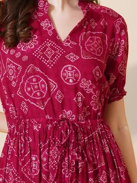 • Pink ethnic motifs print fit & flare dress