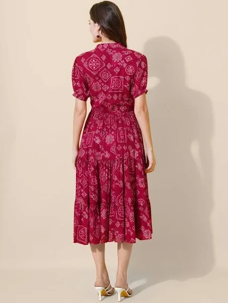 FLOWERVELLY Women Puff Sleeves Fit & Flare Midi Dress