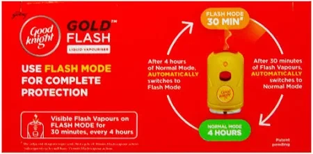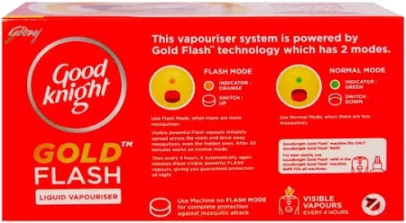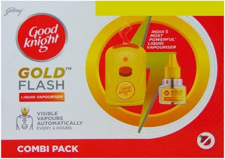 Good Knight Gold Flash Repellent Combo - Machine + Refills, Liquid Mosquito Vaporiser (1 Unit 2 Refill)
