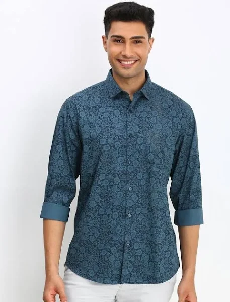 Men Regular Fit Printed Cut Away Collar Casual Shirt