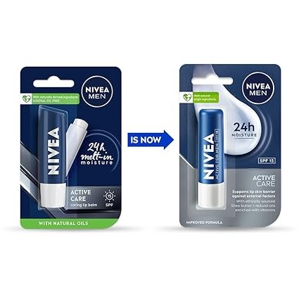 NIVEA MEN Active Care 4.8g Lip Balm|24 H Melt in Moisture Formula|Natural Oils|Nourished Lips,4.8 g (Pack of 1)