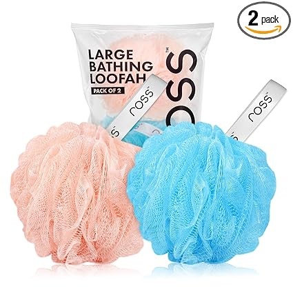 ross Large Bath Loofah Sponge Scrubber Exfoliator for High Lather Cleansing (Peach and Blue)