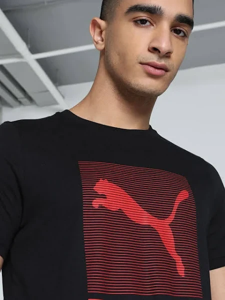 Product story: The striped logo graphic tee brings a fresh spin to casual wear, ideal for both lounging and active moments. This versatile tee seamlessly transitions from the couch to the gym, with a bold chest logo as its standout feature, keeping style in focus. Crafted from breathable cotton, it offers comfort that feels as good as it looks.