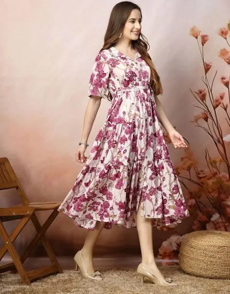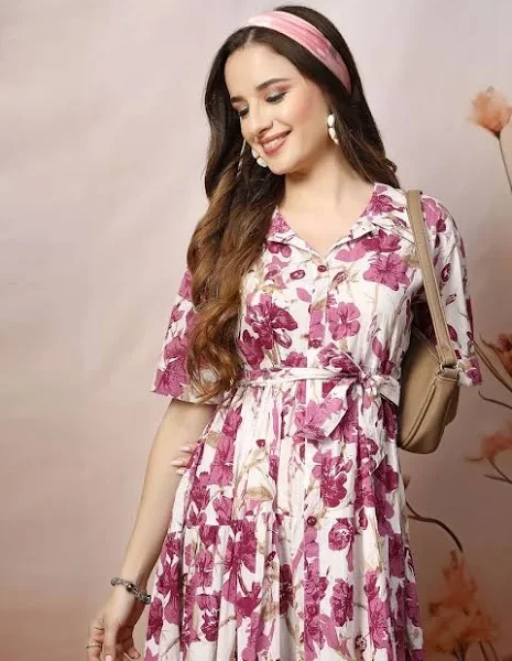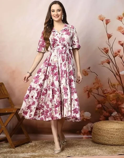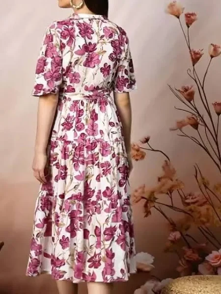 • Magenta floral print fit & flare dress