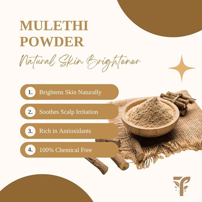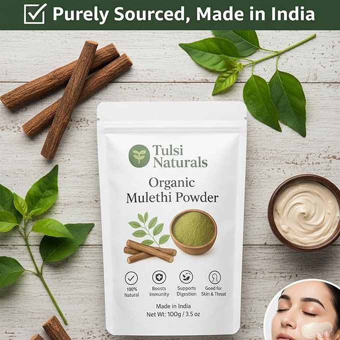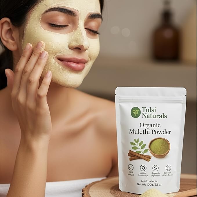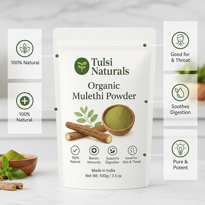 Tulsi Naturals Mulethi Powder 100g | Pure Ayurvedic Licorice Root for Skin Glow, Hair Health, Digestion & Immunity | Natural Herbal Supplement for Face, Hair & Wellness